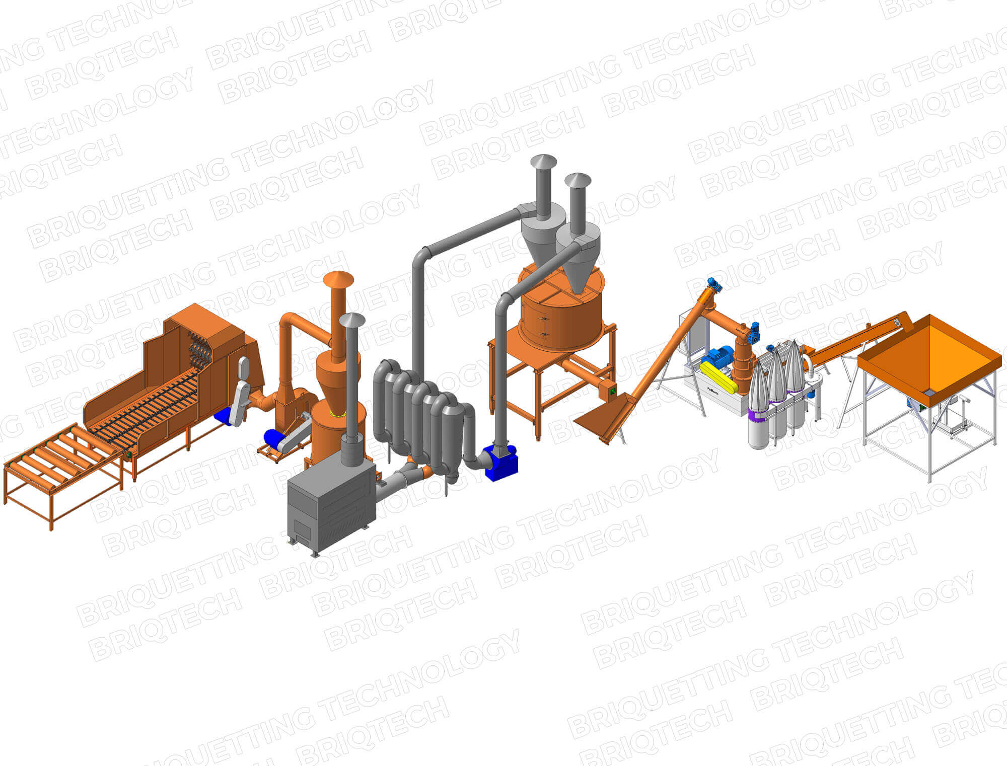 Linie mixta brichetare si peletizare completa - Fabrica brichetare din paie pana la 600-900 kg/ora, brichete 70-75-80 mm si peletizare peleti 500-800 kg/ora, peleti 8mm