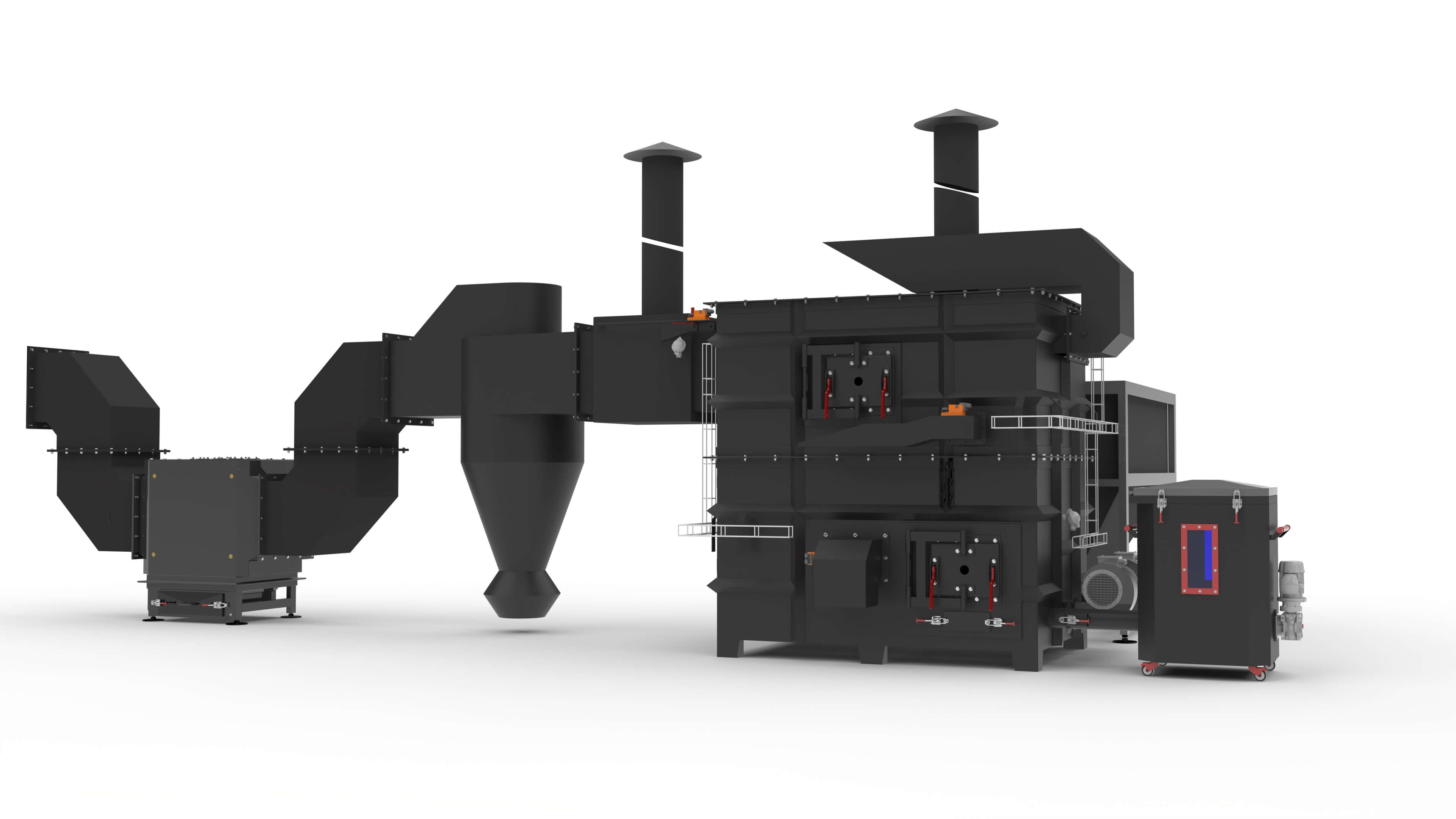 1. Centrala termica industriala pe combustibil solid mixt cu piroliza si cu generator aer cald KDV300-2500